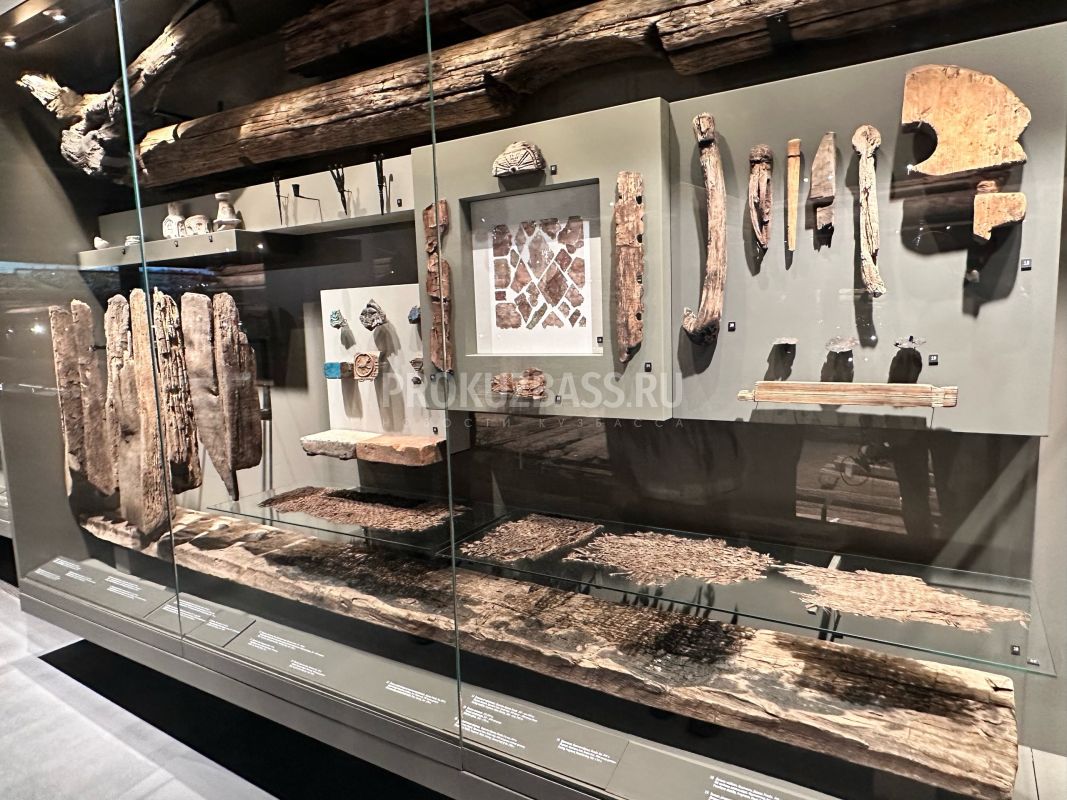 Практически все экспонаты, что представлены внутри, выполнены из дерева: это остатки домов, предметы быта, ювелирные изделия, орудия для охоты и даже детские игрушки. Предполагается, что все это досталось нам от древних предков, а точнее, от татар, которые прежде жили на территории острова-града.