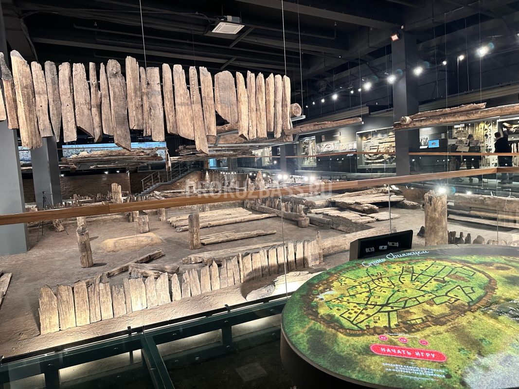 Передвигаться по центру основного зала музея приходится по стеклянной лестнице. Она проходит над самым настоящим археологическим раскопом. Благодаря этому есть возможность пройти по той же тропинке, где когда-то давно ходили жители этого места. Воссоздано реальное расположение деревянной городской застройки середины XVI — XVIII веков.