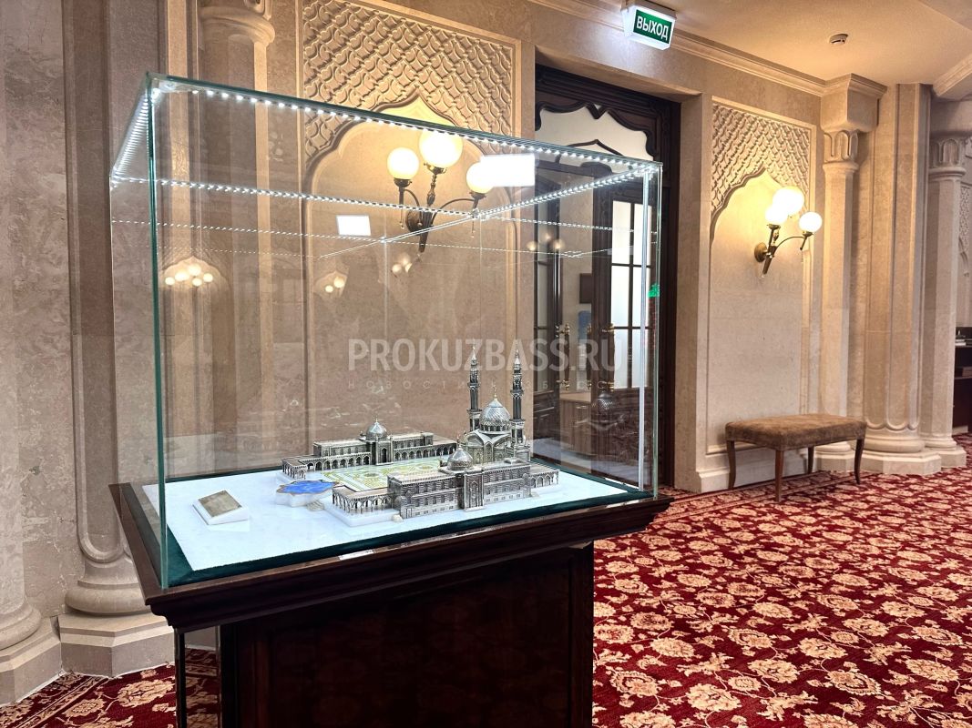 В одном его помещении с высоким потолком и ярким освещением в самом центре зала расположен внушительных размеров стеклянный купол. Под ним хранится уникальная книга — это самый большой в мире печатный Коран (был внесен в книгу рекордов Гиннесса в 2011 году). Крышка, под которой скрыты листы священного писания — зеленого цвета с золотыми узорами, ее украшают разные драгоценные и полудрагоценные камни. Общий вес — 500 килограммов, а это очень даже внушительная цифра.