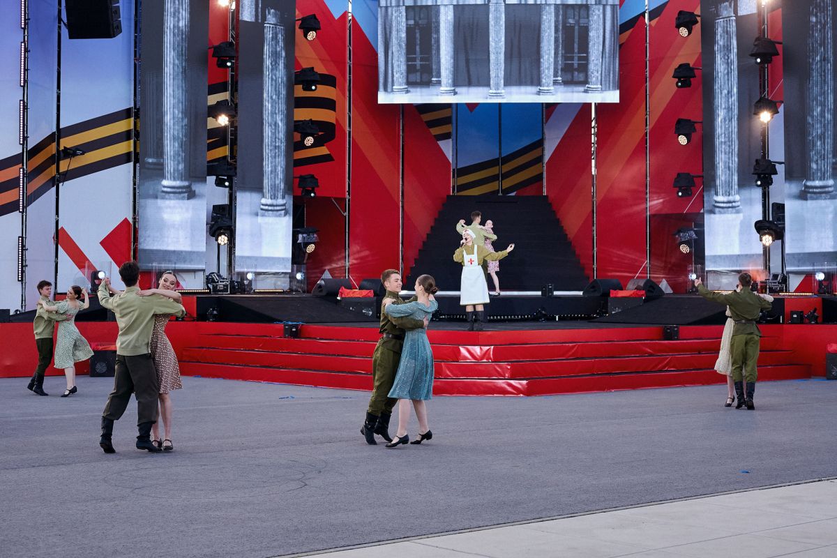 На Московской площади Кемерово в честь 80-летия Победы состоялся уникальный концерт. Хронология событий прослеживалась через музыкальные истории о том, как отцы уходили на фронт, о страданиях и надежде, о самопожертвовании медсестер и солдат.