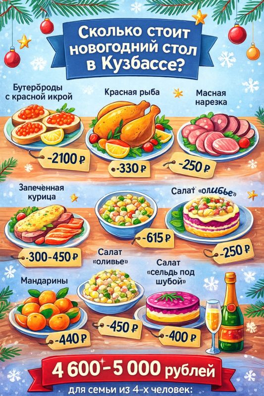 Можно сказать, что в Кузбассе - “свой бюджетный Новый год”: если подобрать продукты с умом, праздничный стол получится и щедрым, и экономичным. А по домашнему настроению — он ничем не уступит ни одному столу, за который по всей России платят на 30–40 % больше.
