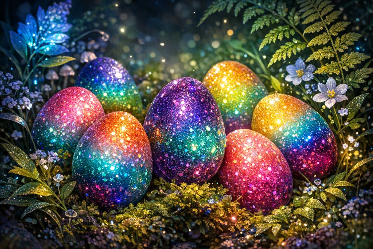 Можно создавать многоцветный градиент, используя несколько красителей. Начните с желтого цвета, окрасив нижнюю часть яйца. После высыхания окуните противоположный конец в синий краситель. В месте наложения цветов образуется зеленый оттенок, создавая красивый радужный эффект. Экспериментируйте с сочетаниями — розовый с фиолетовым, оранжевый с красным, голубой с зеленым.