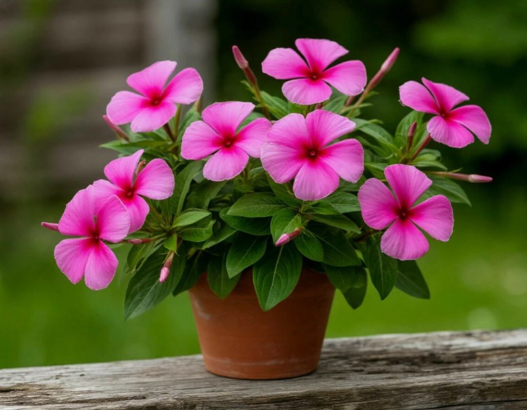 Катарантус. Этот парень родом из тропиков, поэтому просто обожает погреться на солнышке. Если климат в ваших краях капризный и часто случаются похолодания, есть отличный выход. Просто поселите его в красивые мобильные кашпо. Как только погода испортится, вы легко занесете эту красоту в дом или на закрытую веранду. Сеять его лучше всего в начале весны, ростки проклевываются очень резво, а на хорошем свету кустик показывает себя просто фантастически.