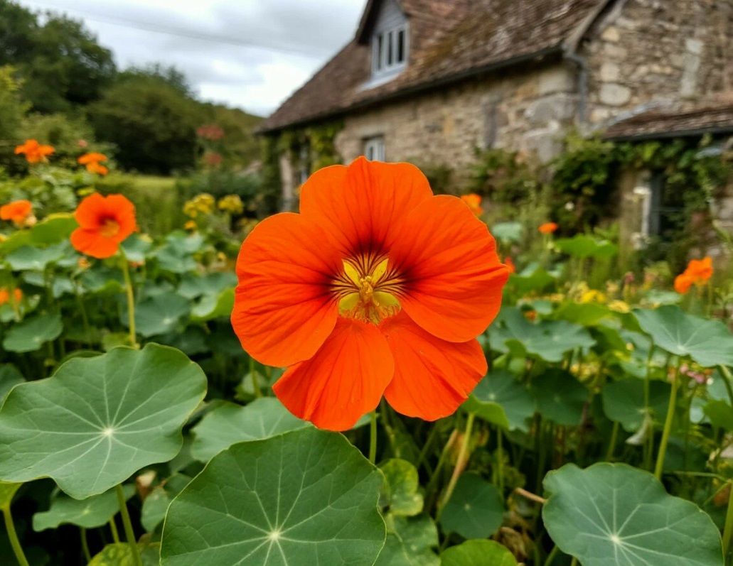 Настурция это настоящая находка для тех, кто не любит лишних хлопот. Выбирайте формат, который больше нравится: длинные лианы, обычные кустики или варианты с необычными пятнистыми листьями. Небольшие сорта цветут так, что глаз не оторвать, бутоны у них бывают просто огромными. Можно вообще не заморачиваться с подоконниками и кинуть семена прямо в огород в мае. А самая главная фишка в том, что ее можно есть. Листья и лепестки отлично заходят в свежих салатах, добавляя блюду классную перечную остринку.