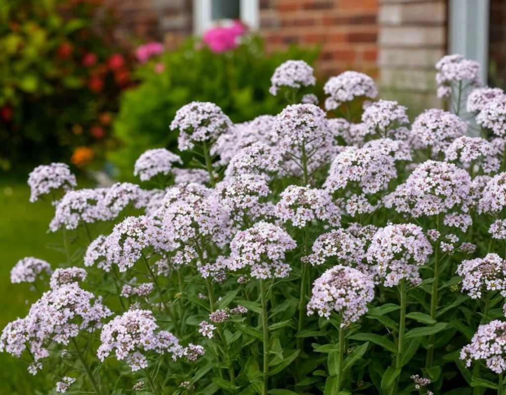 Хотите, чтобы на участке стоял густой медовый аромат? Тогда вам точно нужно посадить алиссум. Он стелется по земле сплошным ковром и цветет все лето вплоть до самых холодов, так как понижения температур он особо не боится. Просто раскидайте семена на открытом участке в конце весны, оставляя между ними немного места. Только не сажайте его в тень, иначе стебли некрасиво вытянутся, а цветов будет мало. Палитра оттенков там огромная, от кипельно-белого до насыщенного фиолетового.