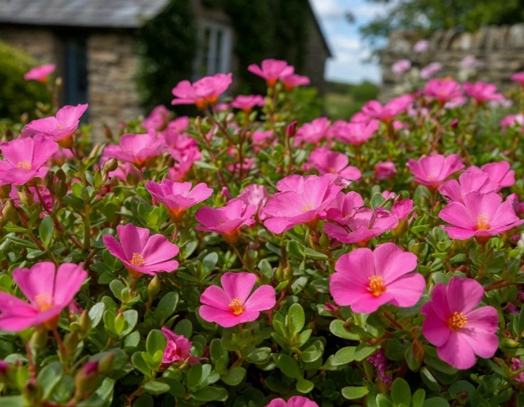 Ну и напоследок присмотритесь к портулаку. Это такой забавный цветущий суккулент. Он здорово смотрится в подвесных корзинах, когда его побеги живописно свисают вниз. Некоторые сорта умудряются при крошечной высоте разрастаться в огромные полянки почти на полметра в ширину, а их махровые цветы выглядят просто роскошно. Сеять его нужно весной, но есть один важнейший нюанс. Семена ни в коем случае нельзя закапывать, их просто оставляют на поверхности влажной земли. Этот цветок настоящий фанат солнца, поэтому в хмурые и пасмурные дни он плотно закрывает свои лепестки и ждет хорошей погоды.