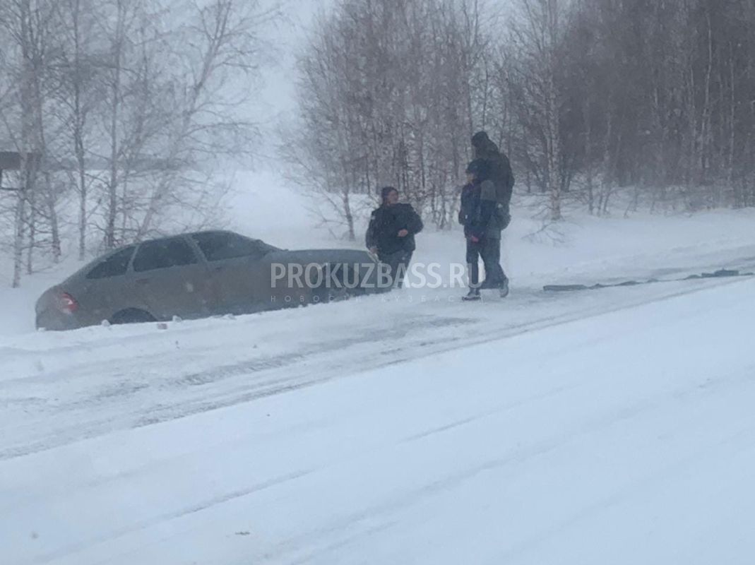 Большегруз и легковушка улетели со скользкой автодороги в Кузбассе