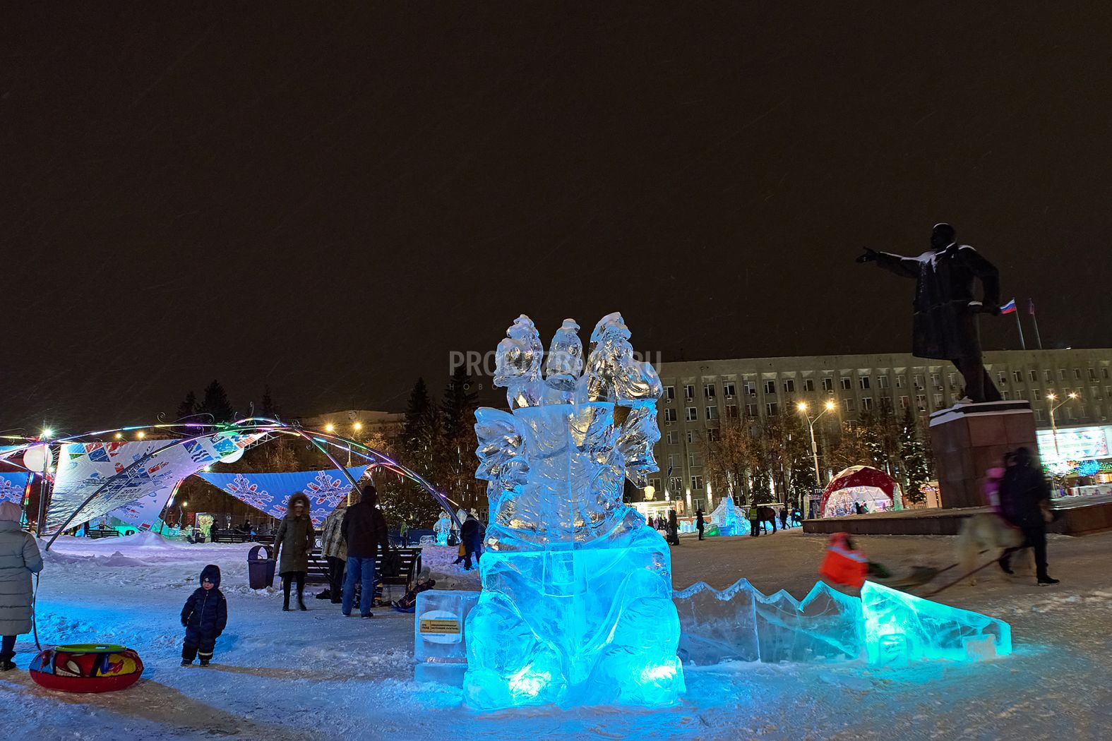 Трехголовый змей и богатыри: ледовый городок с десятками фигур появился в центре Кемерова