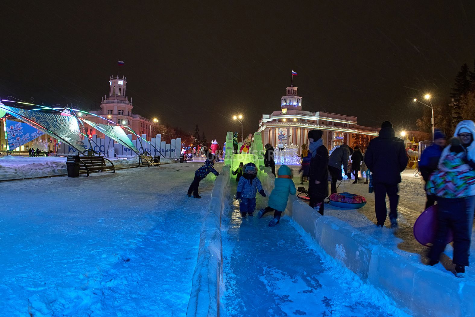 Частью этого праздничного места стали два десятка фигур, среди которых есть богатыри и даже Змей Горыныч со своими тремя головами. При этом все силуэты будет подчеркивать специальная подсветка. Кроме того, на площади обустроены сразу три горки. Высота самой крупной и лихой из них достигает 3,2 метра.