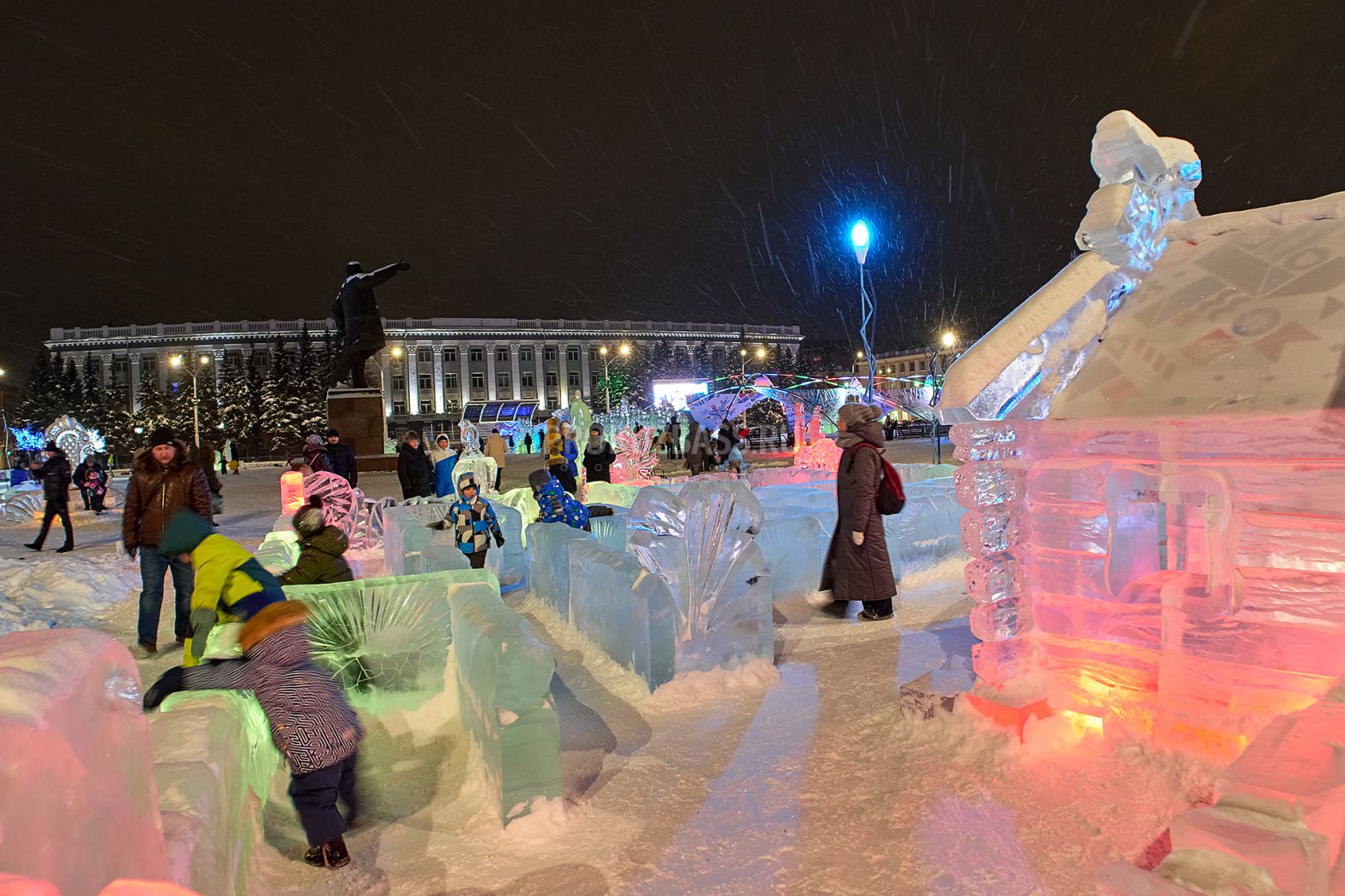 В преддверии Нового года в самом центре города Кемерово появился сказочный ледовый городок с переливающимся всеми цветами лабиринтом, героями из мультфильмов разных поколений и прочими развлечениями, которые каждому знакомы с самого детства.