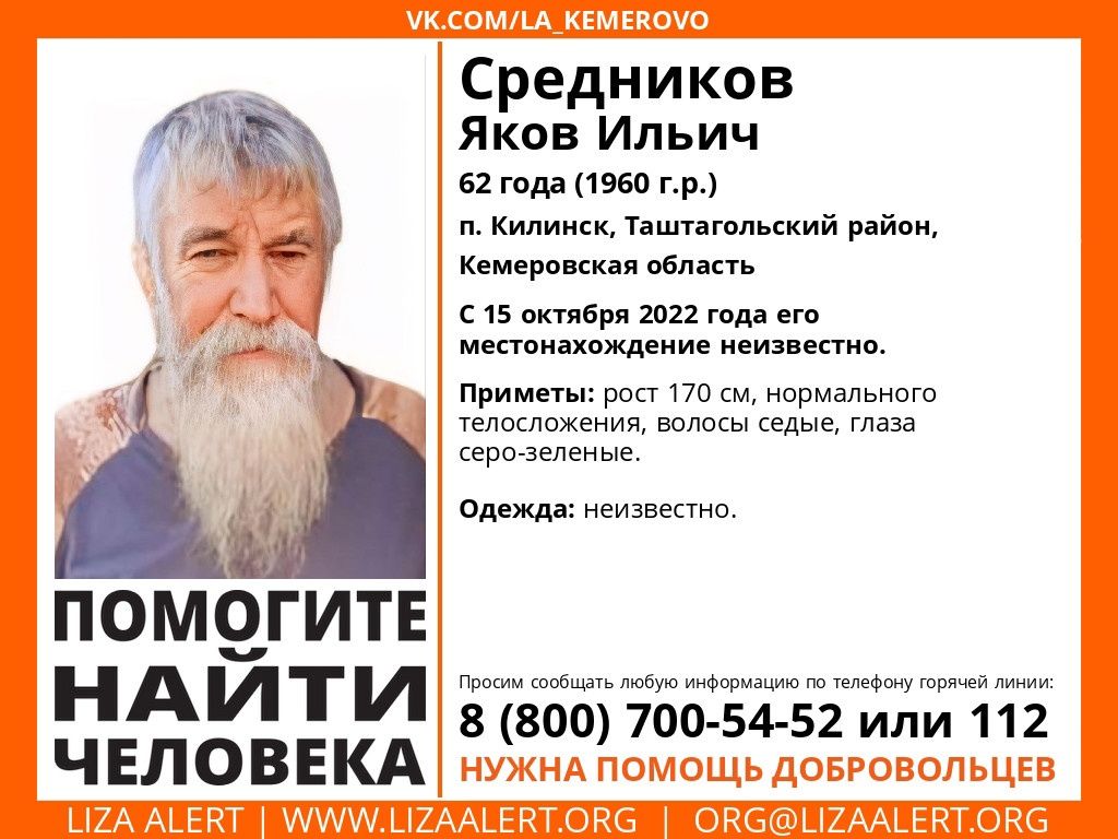 Как следует из данных поисковиков, Яков Ильич Средников, житель поселка Килинск, пропал еще 15 октября. С тех пор информация о его местоположении отсутствует.