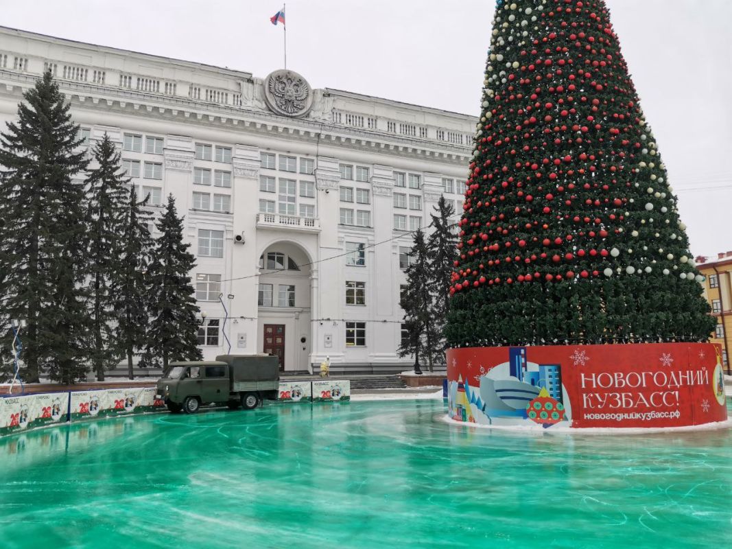 В Кемерове каток у главной новогодней елки на площади Советов стал бирюзовым. Специалисты стадиона «Химик» уже залили слой с яркой краской. Следующим шагом станет заливка завершающим слоем.