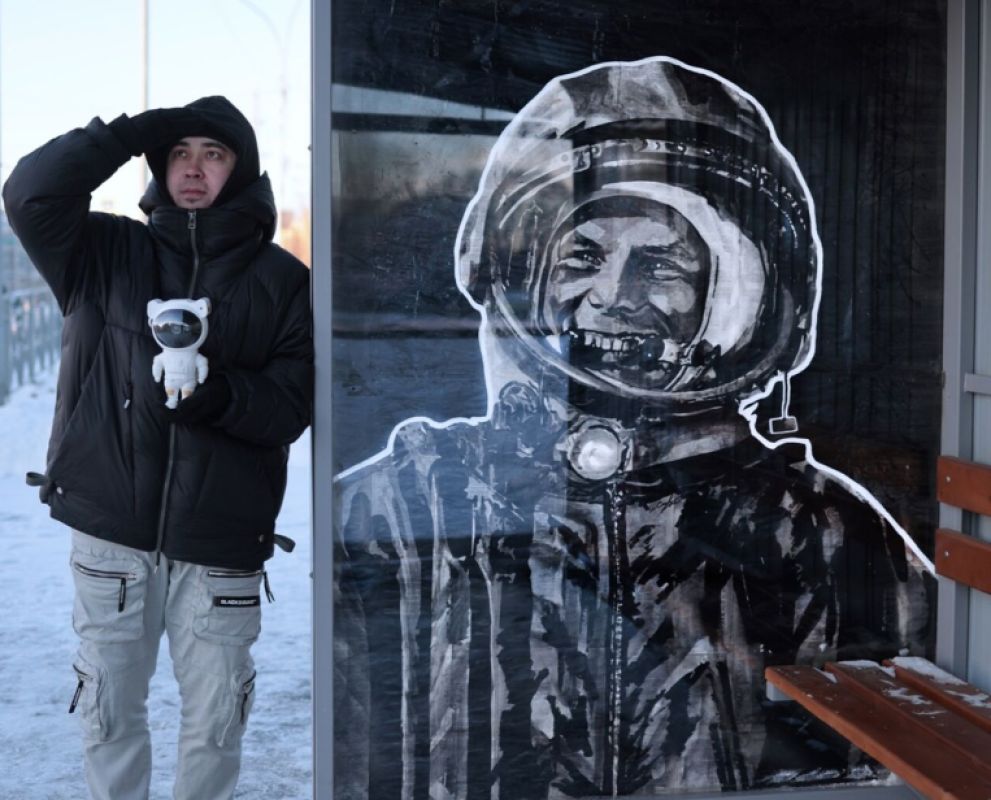 В Прокопьевске на остановке «Площадь Победы» появились портреты известных космонавтов — Юрия Гагарина и Бориса Волынова. О создании арт-объектов в своих социальных рассказал местный художник Дамир Хуссамов. Именно он их и создал.