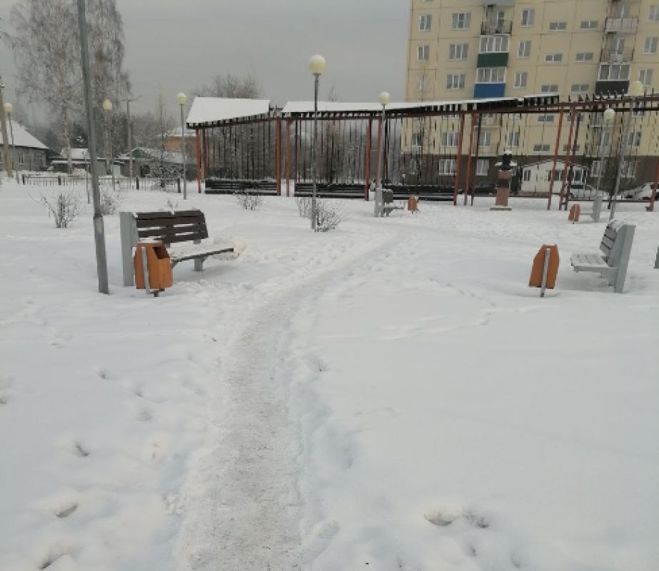 В Сети жители кузбасского городка пожаловались на плохую уборку снега в местном парке.