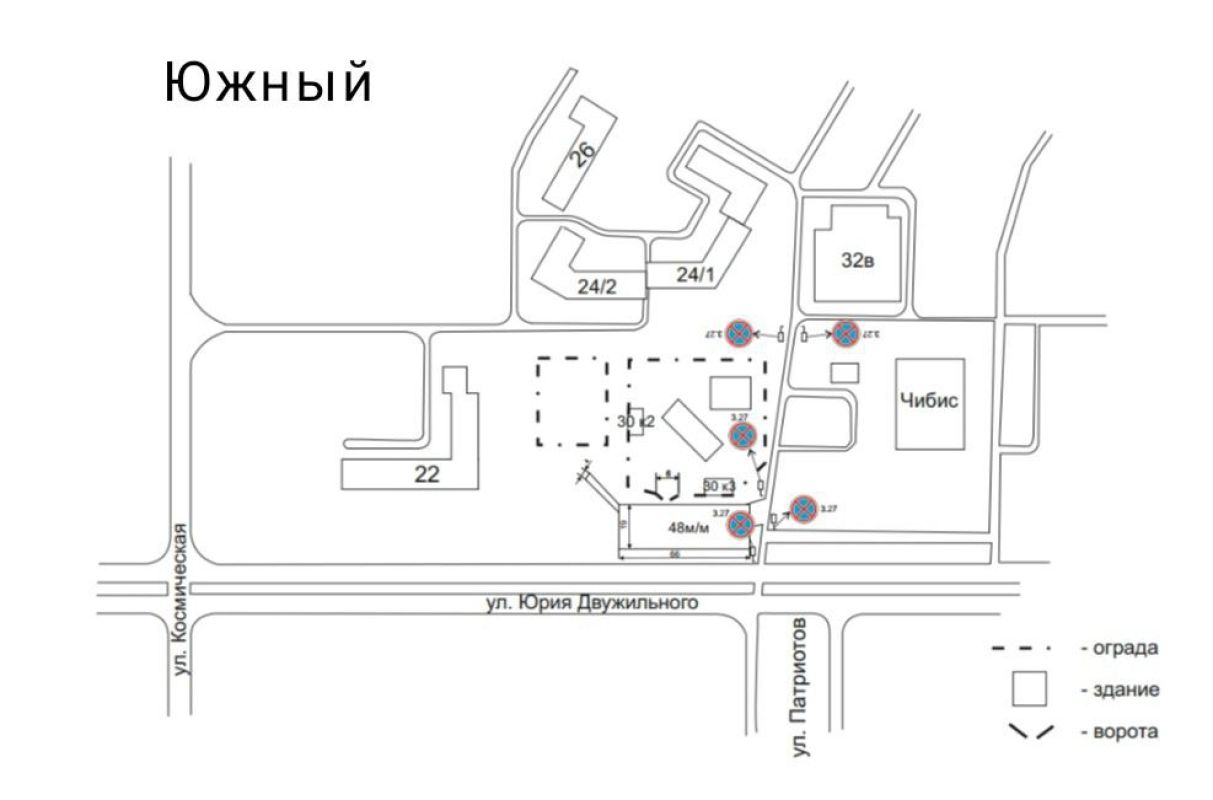 - пр. Химиков, 32 (вдоль парковки у Храма Святой Троицы);