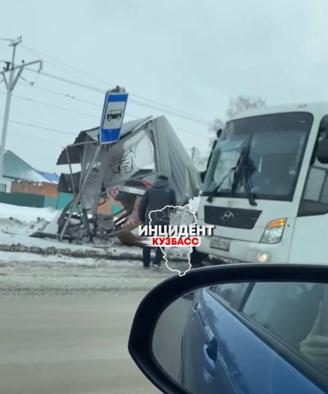 В Прокопьевске автобус "смял" остановку «Тырганский парк».