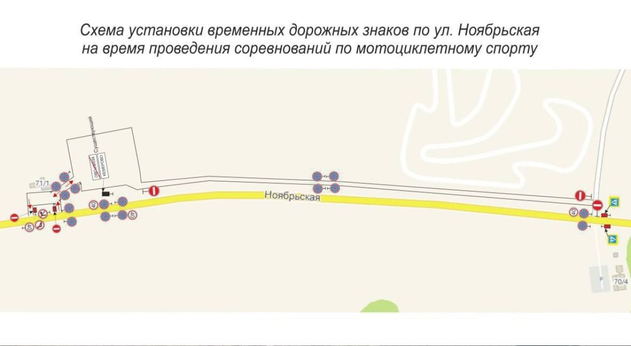 В связи с всероссийскими соревнованиями в Кемерове 12 июля, начиная с 7 часов и до 18 часов завтрашнего дня, изменится организация дорожного движения на улице Ноябрьской возле мотокроссового комплекса «Люскус».