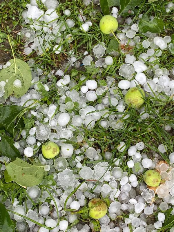 Жители Междуреченска выкладывают в соцсети фото и видео последствий грозы с градом, ударившей по городу 16 июля. Многие градины превосходили в размерах яблочки-ранетки, которые они сбивали с веток.