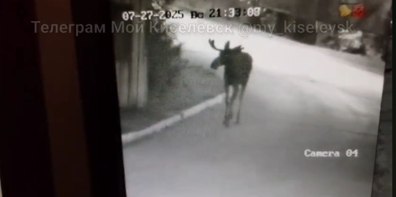 О случившемся один из очевидцев сообщил в соцсетях, прикрепив кадры, на которых видно лося, который пришел на стоянку разреза "Киселёвский".