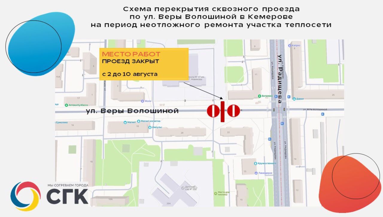 Со 2 августа временно прекратится движение автотранспорта по улице Веры Волошиной из-за аварийного ремонта тепловых сетей.