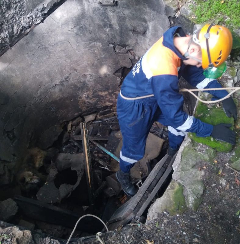 В городе Мариинск произошло происшествие с собакой, которая случайно оказалась в глубокой яме.