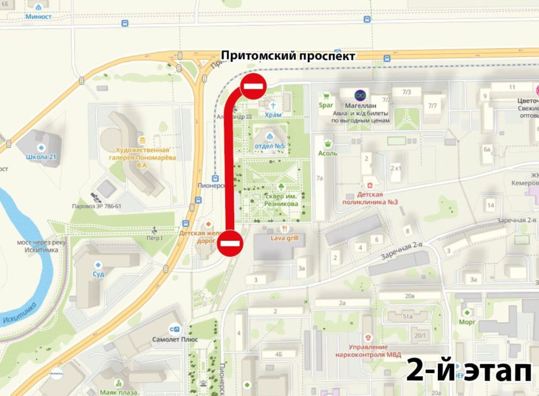 Проезд на участке Притомского проспекта будет закрыт почти на целый месяц для капитального ремонта дорожного полотна рядом с детской железной дорогой.