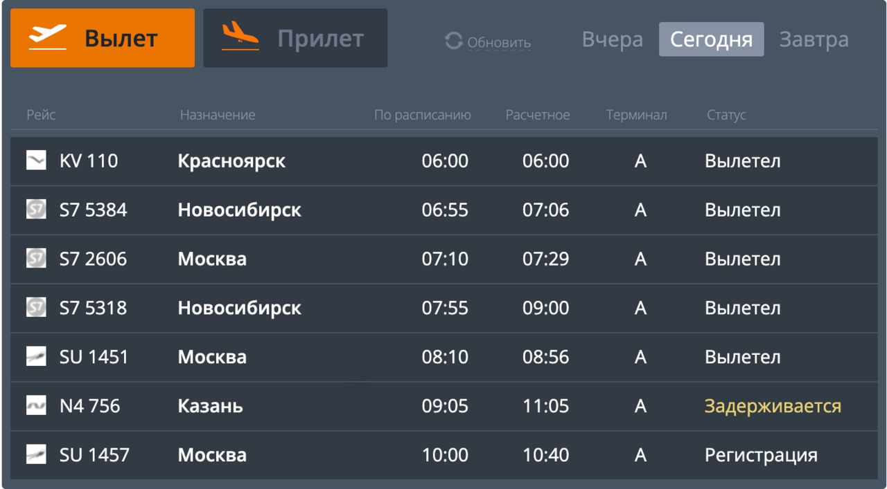 Кроме того, небольшие изменения затронули утренние рейсы в Новосибирск и Москву от перевозчика S7 Airlines. Новосибирский рейс стартовал с небольшой задержкой в 11 минут, отправившись в 7:06 вместо 6:55, а московский отклонился от расписания на 19 минут, покинув аэродром в 7:29 вместо запланированных 7:10.