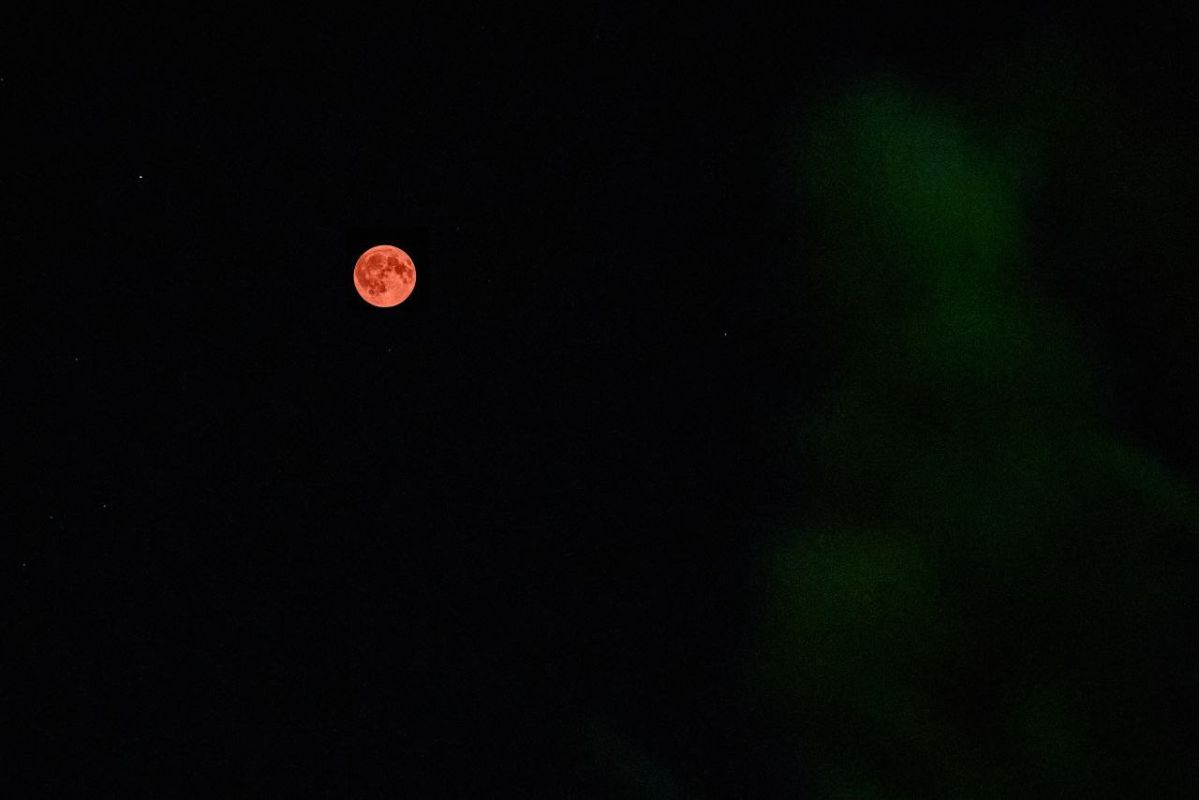 Оранжево-красноватой луной любовались во всем регионе.