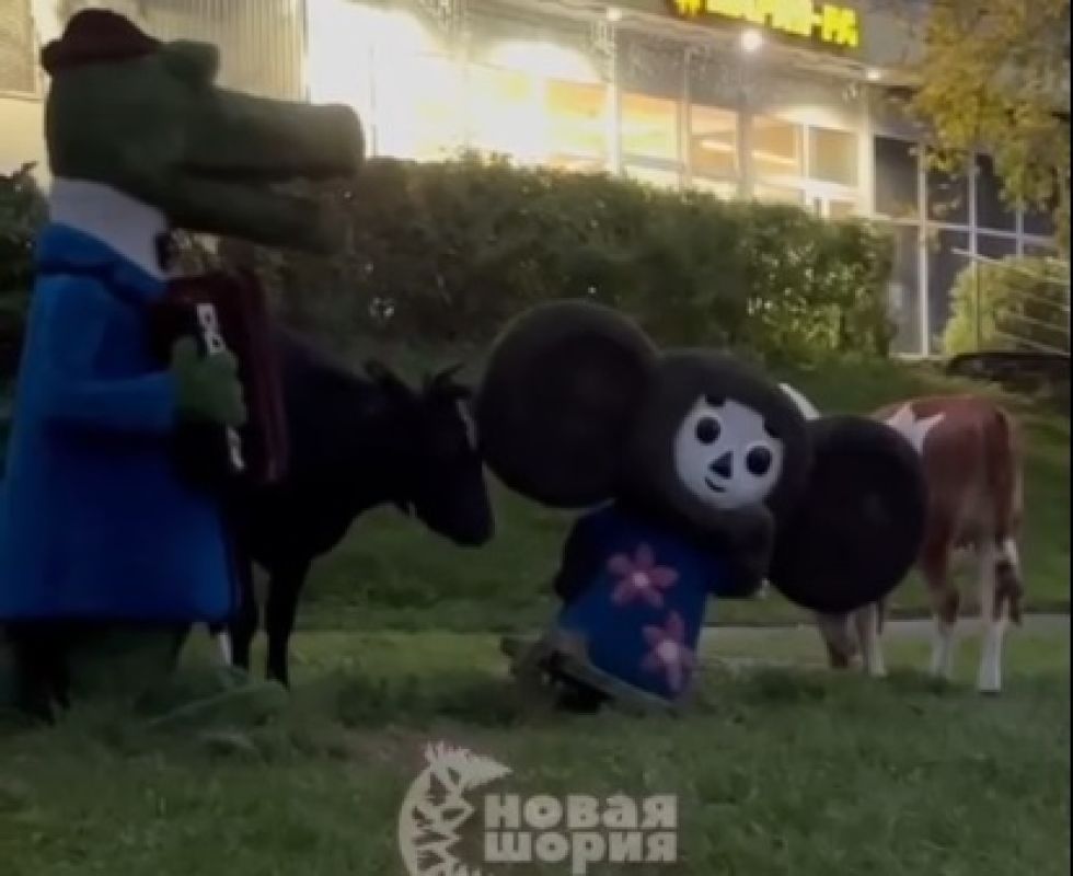 Телеграм-канал «Новая Шория» опубликовал видео, снятое жителями Таштагола. В кадре корова толкает рогами скульптуру Чебурашки и не успокаивается, пока та не опрокидывается. При этом на стоящую радом фигуру крокодила Гены коровы внимания не обращают. Стоит отметить, что скульптура выглядит сделанной на совесть – её опора вкопана в землю.