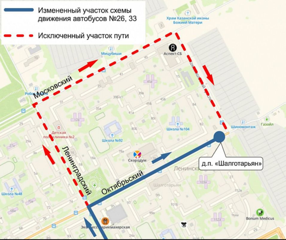В связи с этими ограничениями, схемы движения автобусов маршрутов №24, 26, 33 и 88 будут временно изменены. Транспорт указанных маршрутов будет осуществлять движение по объездным путям. Для лучшего понимания ситуации городская администрация представила соответствующие наглядные материалы.