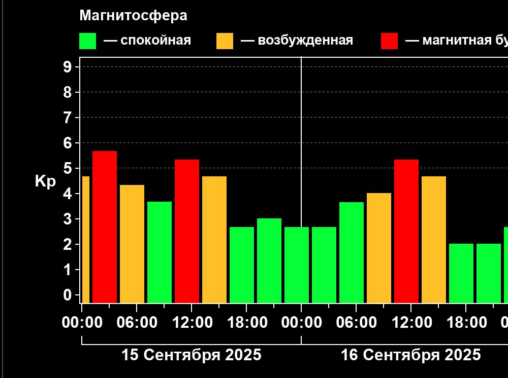 По данным специалистов, в Кузбассе ожидается магнитная буря 15 сентября в 12:00. Также геомагнитная активность прогнозируется 16 сентября, примерно в то же время.