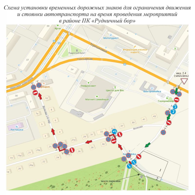 По причине проведения Всероссийского дня бега, с 20:00 19 сентября до 15:00 20 сентября будет запрещена парковка транспорта от ул. Терешковой при заезде на территорию природного комплекса «Рудничный бор», а также по ул. Волкова и 2-му пер. Волкова до пр. Шахтёров.