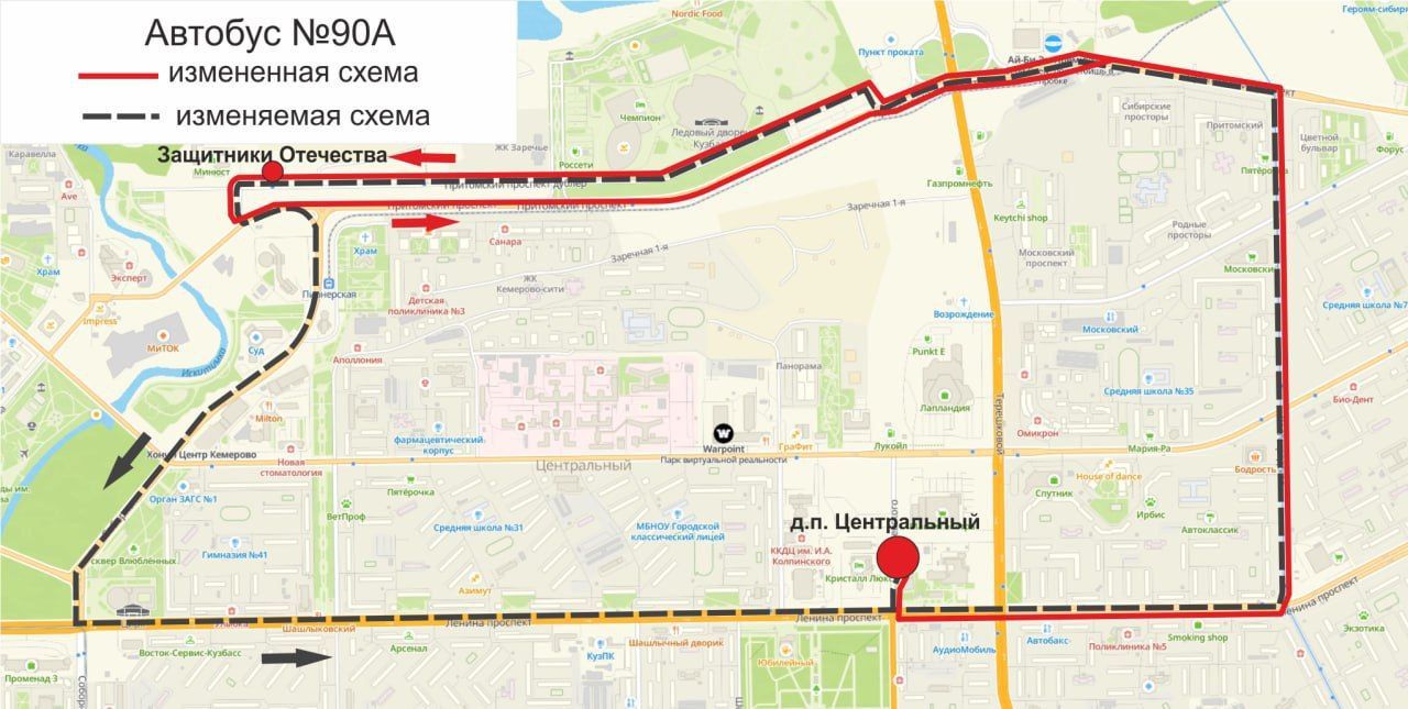 Теперь транспорт будет курсировать от «д.п. Центральный» до остановки «Защитники Отечества» и обратно.