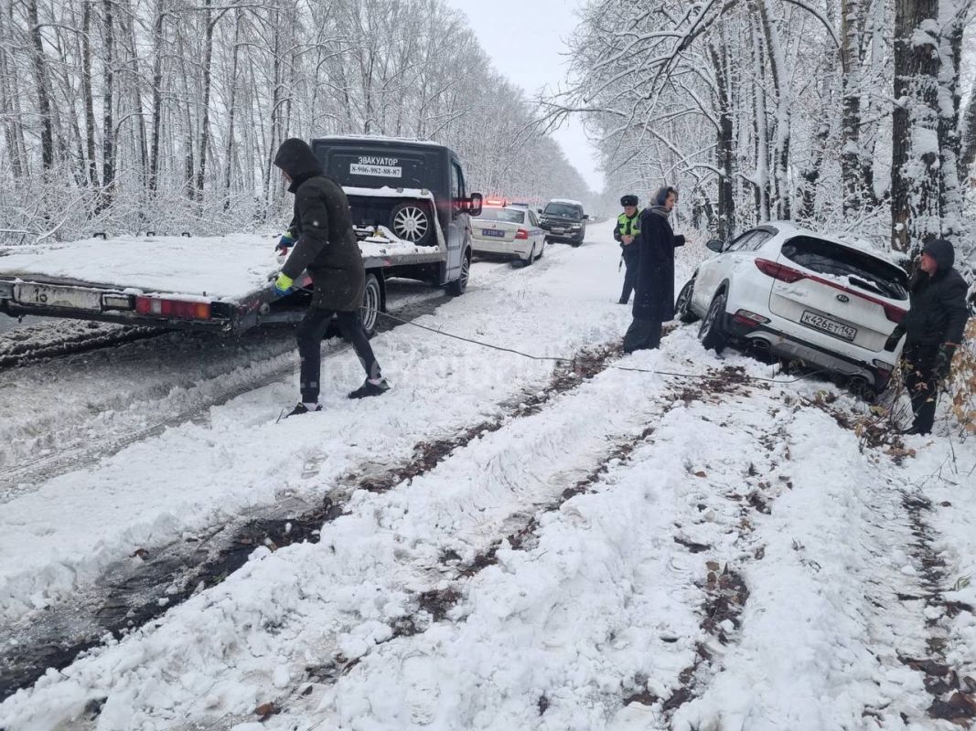 Женщина не пострадала, но выбраться самостоятельно на дорогу у неё не получилось. Для оказания помощи инспекторы привлекли спецтехнику и вернули машину на проезжую часть при помощи троса.