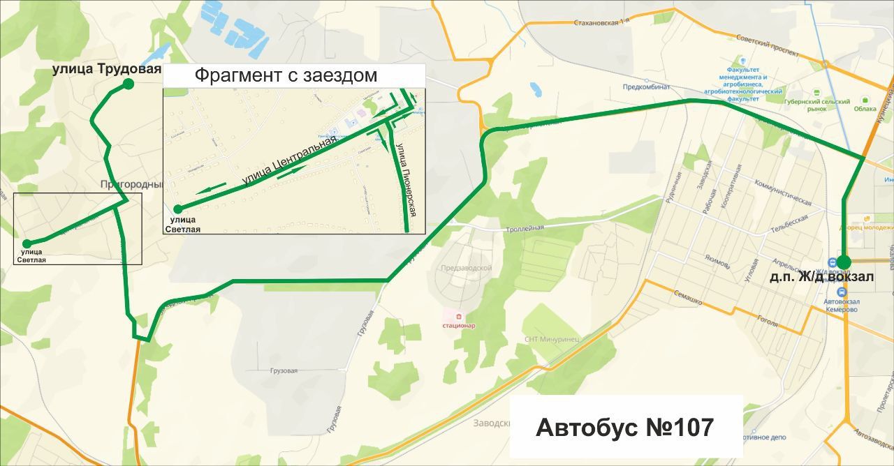 С 25 октября движение межмуниципального автобусного маршрута №107, связывающего железнодорожный вокзал с улицей Трудовая и поселком Пригородным, будет скорректировано.