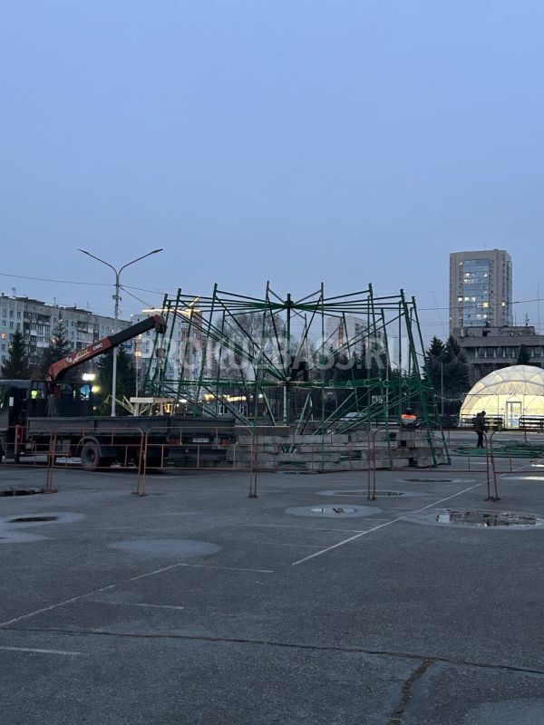 На площади торжеств Центрального района специалисты устанавливаю каркас елки. Работы уже ведутся: установлено ограждение, смонтировано основание и ведется сборка каркаса будущей елки. Ожидается, что само дерево появится в ближайшее время.