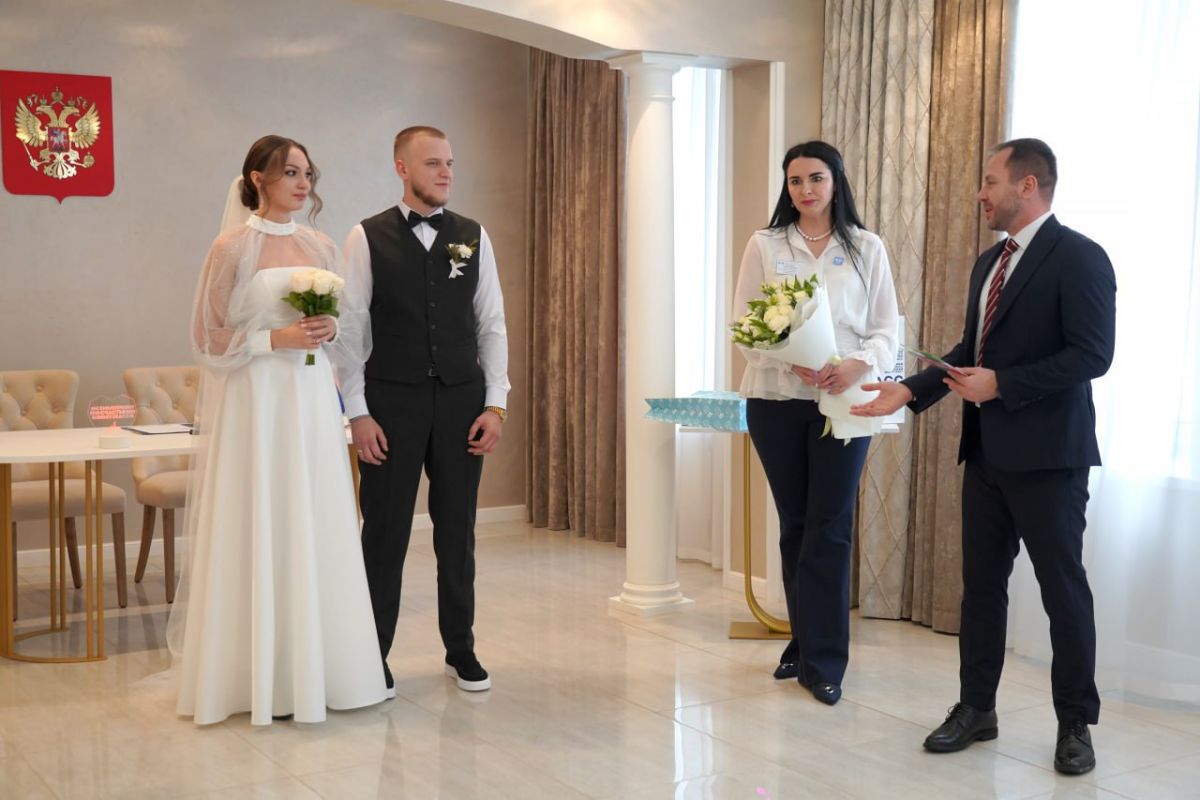 Первыми, кто сказал друг другу «да» в обновленном зале, стали Михаил — выпускник местного техникума, готовящийся работать проходчиком, и Софья — студентка педагогического колледжа из Новокузнецка.