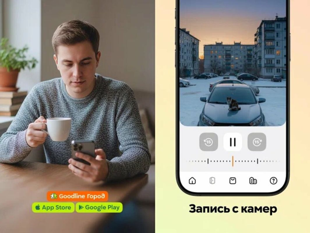 Вы только что проснулись, и в голове мелькает тревожная мысль: ночью сработала сигнализация автомобиля. Раньше это испортило бы всё утро, но теперь вы спокойно открываете «Goodline Город» и быстро находите в архиве запись с дворовой камеры — оказывается, на капот прыгнул соседский кот и спугнул самого себя.