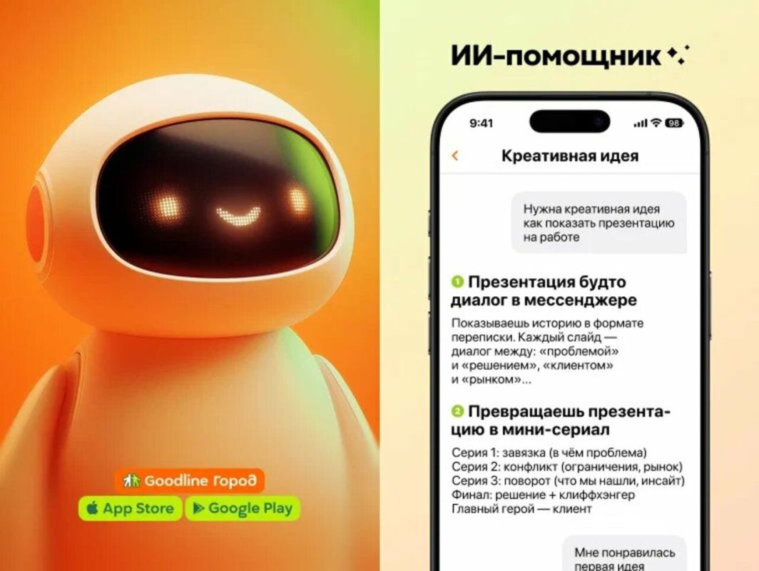 На работе коллега в ступоре: срочно нужна креативная идея для презентации. Вы снова открываете приложение «Goodline Город» и просите помощи у передовой нейросети ChatGPT 5. Задаете вопрос на русском, без VPN, и через несколько секунд передаете коллеге список блестящих идей. Освободившийся час посвящаете важной встрече с партнером.