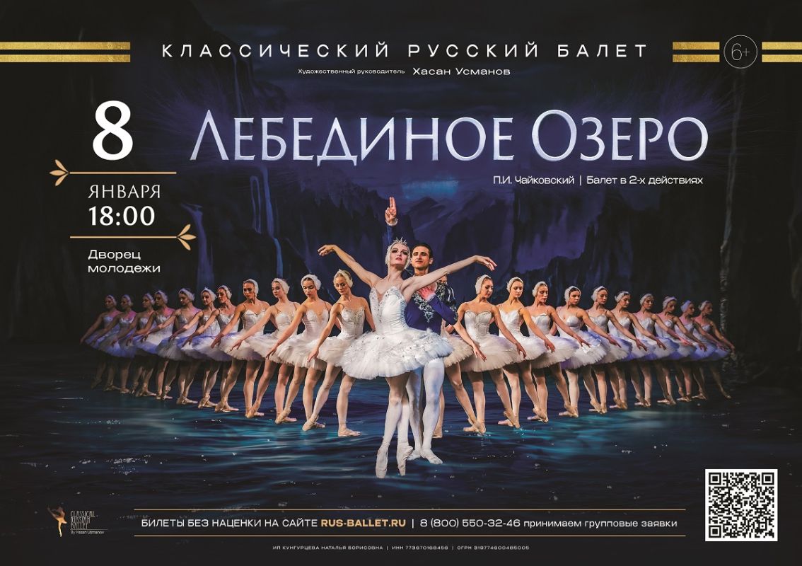 Кемеровчане увидят «Лебединое озеро» от «Классического русского балета» только 8 января 2026 года на сцене кемеровского Дворца Молодёжи.