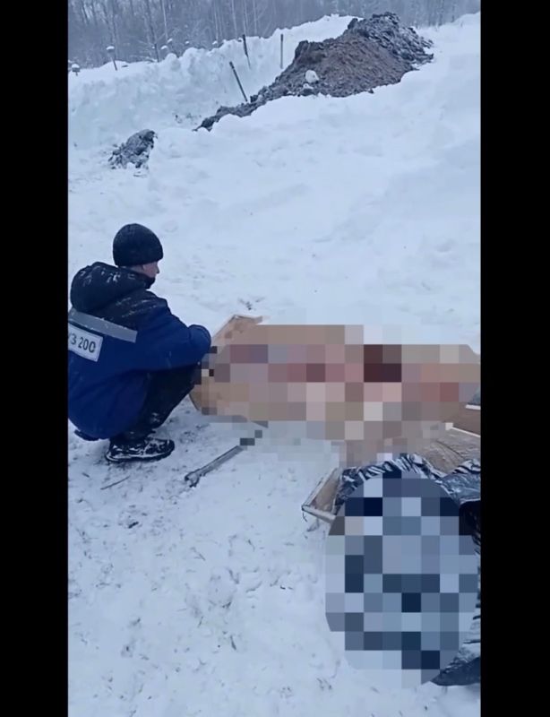 Видео от 17 декабрязапечатлело, как мужчины, одетые в куртки «Груз 200» складывают голые тела в гробы и просто сбрасывают их в траншею. Гробы переворачиваются, ломаются, останки вываливаются из них, но «похоронщиков» это нисколько не волнует. В чёрных мешках в эту же ямы отправляют останки из морга.