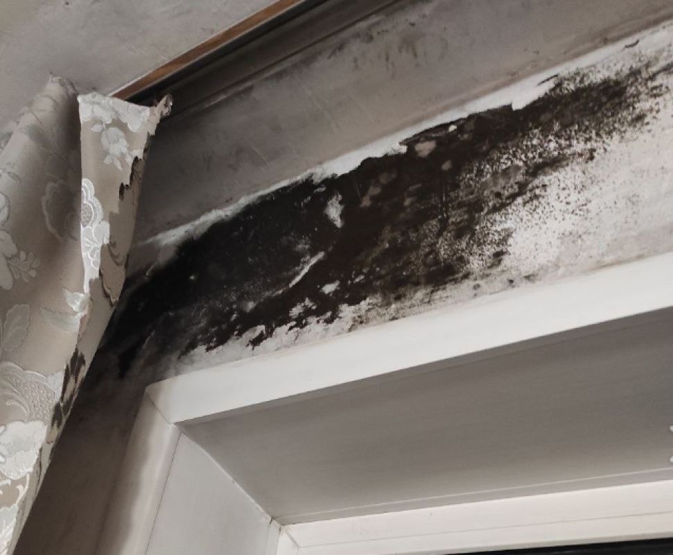 В подтверждение слов женщина поделилась фотографиями, где видна черная плесень на стенах внутри жилого помещения.