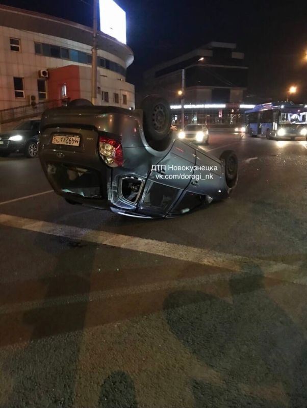 В Сети в сообществе автомобилистов Новокузнецка минувшим вечером в 20:07 появилась информация об аварии с «перевертышем». На опубликованных кадрах видно, что посреди проезжей части находится перевернутая вверх колесами легковушка Lada.