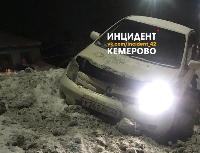 В Кемерове в поздний час произошло одиночное ДТП: водитель не справился с управлением легковушки и улетел в сугроб.