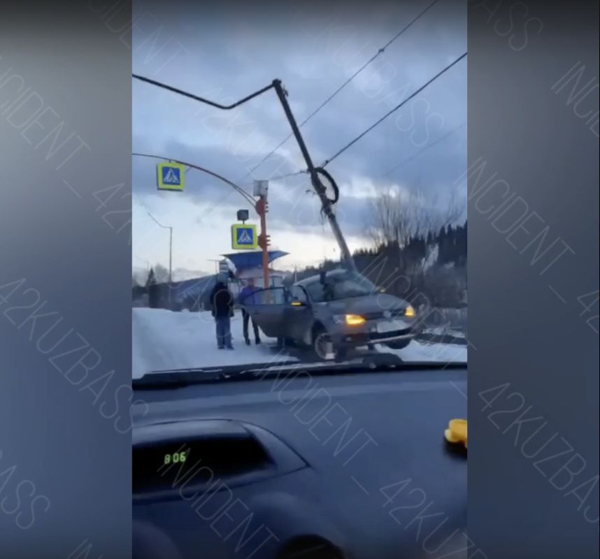 Машина влетела в столб в Кузбассе: есть пострадавшие