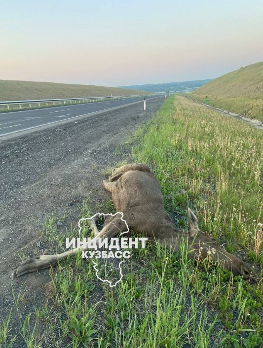 В Сети кузбассовцы рассказали, что на ленинск-кузнецкой трассе якобы произошел инцидент с жителем леса. Судя по фото, мертвый лось лежал на обочине проезжей части.