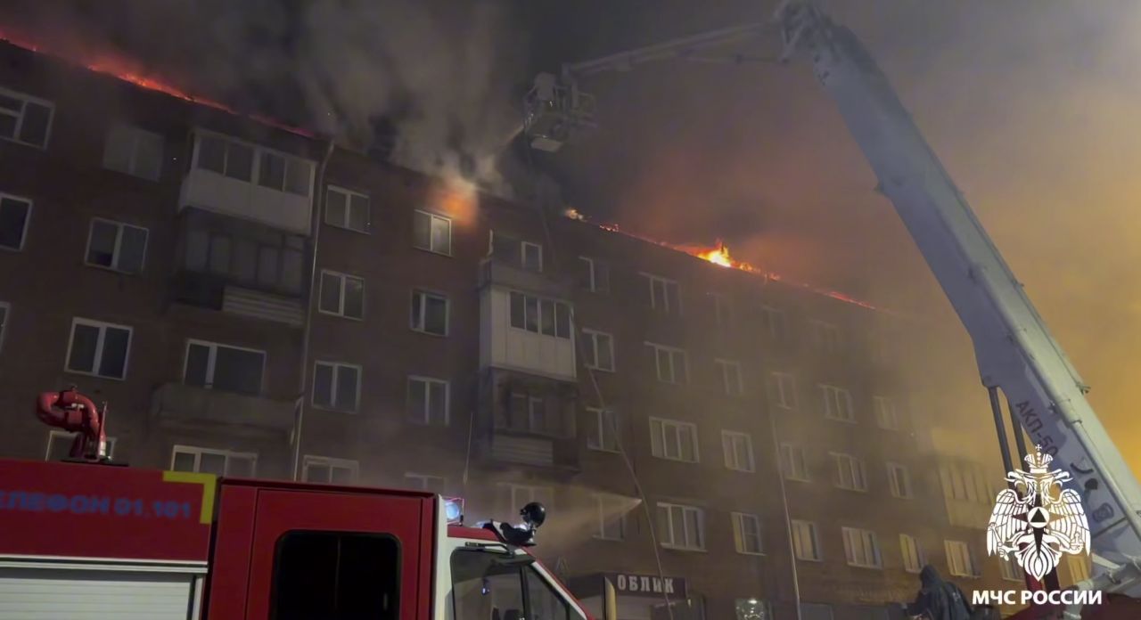 Пламя охватило крышу жилого дома на площади 1,2 тыс «квадратов» в Кемерове