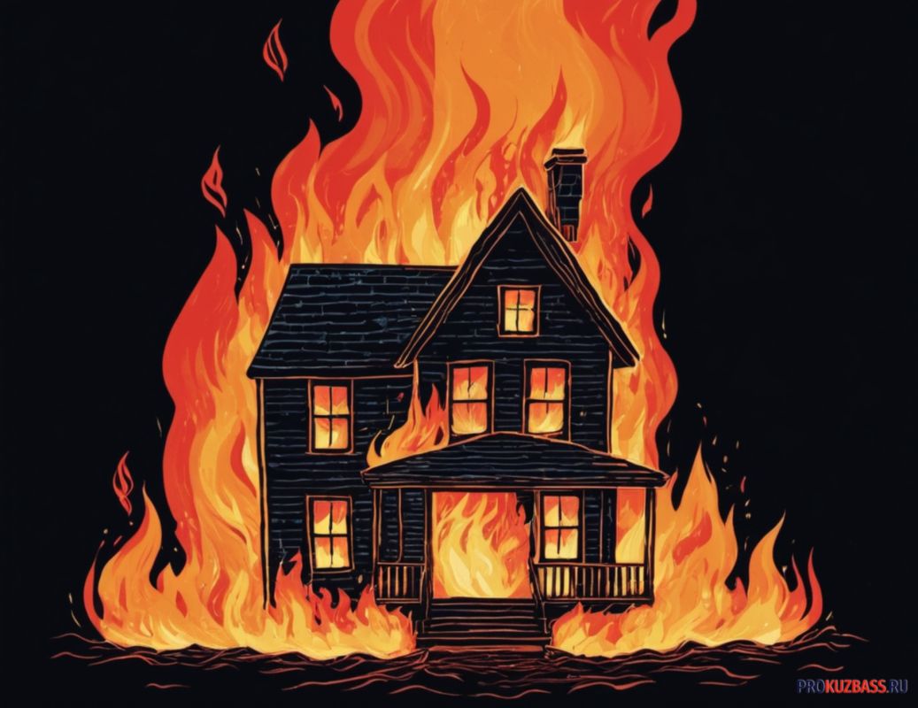 Трое взрослых и двое детей выбежали из горящего дома в Кузбассе