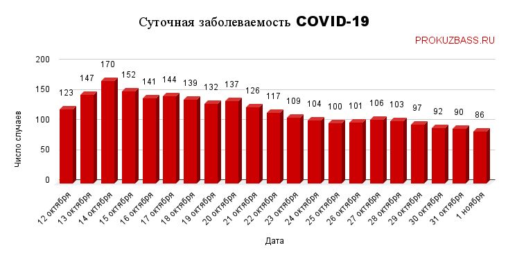 За минувшие сутки в Кемеровской области насчитали 86 новых больных COVID-19, сообщает утром 1 ноября оперштаб Минздрава. Общее число случаев составило 208 996.